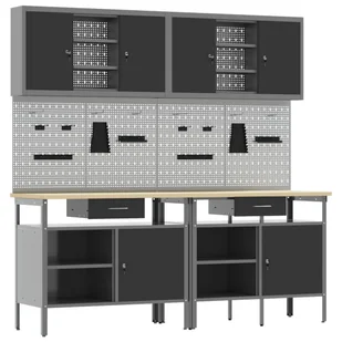Ten zestaw stali roboczej to perfekcyjne połączenie funkcjonalności i industrialnego stylu, idealny zarówno dla profesjonalnych rzemieślników, jak i dla domowych majsterkowiczów. Prostokątny stół, zaprojektowany do ciężkich zadań, świetnie wygląda i ma gładką teksturę, co czyni go doskonałym do różnych przestrzeni roboczych. Z metalowymi półkami, które oferują sporo miejsca na narzędzia, jest idealny do organizacji, co ułatwia pracę w warsztacie czy garażu.