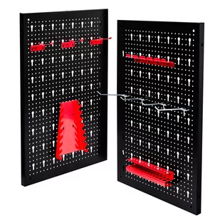 Uzyskaj pełny przegląd swojej powierzchni roboczej dzięki dużej i wszechstronnej ściance na narzędzia. Dzięki wielu możliwościom montażu wszystko ma swoje miejsce i jest zawsze w zasięgu ręki. Obszerny zestaw akcesoriów obejmuje zarówno proste haczyki, jak i złożone uchwyty do kluczy płasko-oczkowych, śrubokrętów, młotków itp. Solidną konstrukcję stalową można zainstalować, w zależności od dostępnej przestrzeni, zarówno w warsztacie, garażu czy też piwnicy.