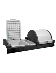 Mocowanie zestawu odbywa się na górnej półce wózka. W cenie jedna pełna, bez podziałów półka, dodatkowo zamykana, jedna mniejsza kuweta oraz jedna duża z osłoną zawartości. Pasuje do modeli: NKU 30 HF/FF NKU 31 HF/FF NKU 32 HF/FF Dawniej: 903706