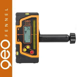 Odbiornik cyfrowy z odczytem milimetrwym geoFENNEL FR 75-MM przeznaczony jest do laserów liniowych i krzyżowych z wiązką czerwoną jak i zieloną. Detektor wyposażony jest w dwa czytelne, podświetlane wyświetlacze LCD, na których prezentowany jest odczyt liczbowy. Wyświetlacze umieszczone zarówno z przodu, jak i z tyłu znacząco wpływają na komfort oraz wygodę pracy z detektorem. Pole detekcji o długości 100mm ułatwia "namierzenie" wiązki lasera na dużej odległości. Wartość wyświetlana na ekranie określa w milimetrach dokładną różnicę między aktualnym poziomem, a punktem odniesienia. Wynik pomiaru widoczny jest na ekranie w czasie rzeczywistym, co znacząco skraca czas pracy, potrzebny na wykonywanie czasochłonnych obliczeń. Odbiornik wyposażony jest w trzy grupy diod LED, które sygnalizują wykrycie poziomu przez detektor. Diody umieszczone są z przodu, z tyłu oraz z boku urządzenia. Dzięki wysokiej odporności na kurz i wodę IP 65, z detektora możemy korzystać nawet w trudnych warunkach terenowych. Odbiornik posiada dwie wbudowane libelle rurkowe, ułatwiające utrzymanie go w odpowiedniej płaszczyźnie. Dodatkowo magnesy znajdujące się na górnej i bocznej krawędzi urządzenia umożliwiają przytwierdzenie detektora do elementów metalowaych. Na wyposażeniu znajduje się solidny uchwyt służący do mocowania detektora na łacie pomiarowej. Duży zasięg, zależny od rodzaju wykorzystywanego lasera, umożliwia zastosowanie datektora na dużych odległośćiach zarówno w terenie jak i większych wnętrzach, jak np. hale.