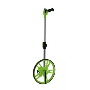 Koło pomiarowe, drogomierz to doskonałe narzędzie do precyzyjnego odmierzenia odległości między punktami nawet tych najbardziej oddalonych. Duża średnica koła, 318mm, zapewnia stabilność w trudnym terenie oraz precyzję pomiaru. Zakres pomiarowy wynosi blisko 100km, co pozwala wymierzyć nawet największe odcinki jak mierzenie obrysu działki itp. Mechaniczny licznik znajdujący się w korpusie osi jest czytelny i prosty w obsłudze. Teleskopowa rękojeść pozwala na złożenie drogomierza do kompaktowych wymiarów i transport/magazynowanie w dołączonej torbie.