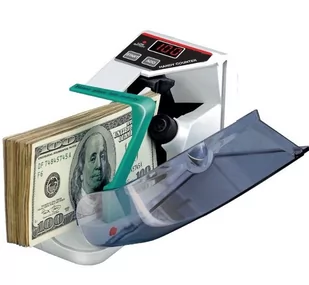 Liczarka do pieniędzy Model: V30 Zasilanie: Załączony zasilacz (100-240V -50/60Hz AC/DC) lub 4 baterie AA Wymiary: 190x120x75mm Prędkość liczenia banknotów: 600 na minutę Pojemność: