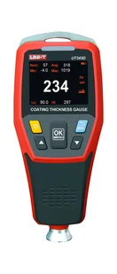 48 x 36 mm Wymiary: 153,5 x 64,5 x 41 mm Akcesoria: kabel microUSB, bateria. Specyfikacja Miernik grubości lakieru Uni-T UT343D czerwonyUT343D to precyzyjny miernik grubości lakieru, który może mierzyć grubość lakieru na metalach żelaznych i nieżelaznych. Urządzenie charakteryzuje się wysoką dokładnością, nieniszczącym pomiarem i posiada zarówno jedno-, jak i wielopunktowe algorytmy uśredniania oraz szybki pomiar.