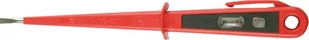 Próbnik napięcia Euro, czerwony 190mm H+H Próbnik napięcia Euro, jednofazowy 190mm H+H Sprawdzony i dopuszczony zgodnie z VDE 0680/6 Trzpień ze stali narzędziowej, niklowany. Wskazanie wartości pomiaru na wyświetlaczu umieszczonym na rękojeści. Do napięcia 100–250 Volt Uchwyt z tworzywa sztucznego w kolorze czerwonym z ochroną na rękę na całym obwodzie i izolowanym klipsem z tworzywa sztucznego. Dane techniczne Długość: 190 mm Marka: