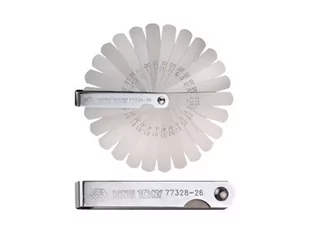 Szczelinomierze King Tony 26 sztuk. Rozmiar blaszki 1/2" x 3", rozmiary 0. 0015", 0. 002", 0. 0025", 0. 003", 0. 004", 0. 005', 0. 006", 0. 007", 0. 008", 0. 009", 0. 010", 0. 011", 0. 012", 0. 013", 0. 014", 0. 015", 0. 016", 0. 017", 0. 018", 0. 019", 0. 020", 0. 022", 0. 023", 0. 024", 0. 025".