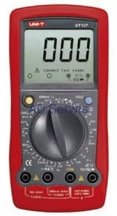 ZAKRESY POMIAROWE Napięcie stałe DC: 200 mV/2 V/20 V/1000 V (0,5%+2) Napięcie zmienne AC: 200 V/750 V (0,8%+5) Natężenie prądu stałego DC: 200 mA/10 A (0,8%+5) Rezystancja: 200 Ohm/2 kOhm/20 kOhm/200 kOhm/ 2 MOhm /20 MOhm (0,8%+5) Temperatura: