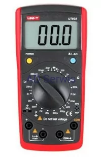 ZAKRESY POMIAROWE Pojemność: 2 nF/20 nF/200 nF/2 F/20 F/200 F/600 F (1%+5) Indukcyjność: 2 mH/20 mH/200 mH/2 H/20 H/200 H (2%+8) Rezystancja: 200 Ohm/2 kOhm/20 kOhm/200 kOhm/2 MOhm/20 MOhm/200 MOhm (0,8%+1) Test diod Sprawdzanie ciągłości obwodu Test tranzystorów DODATKOWE FUNKCJE Ręczna zmiana zakresów pomiarowych Wskaźnik niskiego poziomu baterii Maksymalny odczyt: 2000 CECHY OGÓLNE Zasilanie: