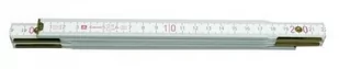 Klasyczna składana miarka drewniana wykonana z drewna bukowego, malowana na kolor biały , zabezpieczona przed wpływem wilgoci i promieniowania UV, połączenia elementów miarki wzmocnione mosiężnymi okuciami. Wykonana w III klasie dokładności. Przeznaczenie / zastosowanie Do wykonywania pomiarów i trasowania w zakresie 2 m Parametry