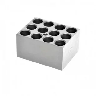 Blok modułowy jest wykonany z litego bloku z anodyzowanego aluminium*. Bliski kontakt próbówek ze ściankami bloku pozwala na maksymalne zatrzymanie ciepła. Blok jest wyposażony w studzienkę na termometr służącą do pomiaru temperatury bloku. Wymiary pojedynczego bloku (dł. x szer. x wys.) : 9,5 x 7,6 x 5,1 cm Wymiary podwójnego bloku (dł. x szer. x wys.) :