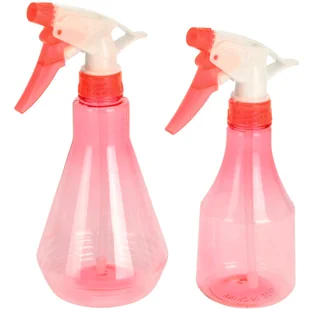 Parametry: pojemność: 350 ml, 450 ml materiał: tworzywo sztuczne kolor: czerwony Zestaw spryskiwaczy do roślin składa się z dwóch rozpylaczy o różnej pojemności. Przydaje się podczas pielęgnacji, podlewania i nawilżania roślin oraz usuwania z nich kurzu. Ułatwia dozowanie nawozu i innych środków ochrony roślin.