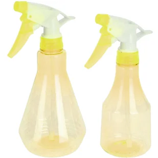 Parametry: pojemność: 350 ml, 450 ml materiał: tworzywo sztuczne kolor: żółty Zestaw spryskiwaczy do roślin składa się z dwóch rozpylaczy o różnej pojemności. Przydaje się podczas pielęgnacji, podlewania i nawilżania roślin oraz usuwania z nich kurzu. Ułatwia dozowanie nawozu i innych środków ochrony roślin.