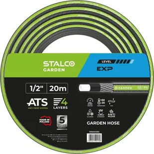 Wąż ogrodowy 1/2″ 20 m EXP STALCO GARDEN S102041220 to niezawodne narzędzie do podlewania ogrodu, które łączy w sobie trwałość, elastyczność i odporność na warunki atmosferyczne. Wykonany z wysokiej jakości PVC, wąż składa się z czterech warstw, co zapewnia jego wytrzymałość i długą żywotność. ATS - System zapobiegający załamywaniu i splątaniu węża podczas użytkowania, oparty na skośnym oplocie trykotowym.