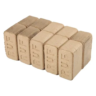 Brykiet RUF do kominków, pieców c. o. , palenisk, kotłów grzewczych, wykonany z czystych, suchych trocin wyłącznie z drzew liściastych, wartość opałowa 18-20 MJ/kg, wilgotność 4-8%, zawartość popiołu ok. 0,6%, opakowanie termokurczliwe 10 kg