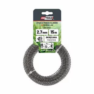 Sprawdzi się do przycinania krawędzi trawników i zwalczania twardszych chwastów. Pasuje do większości standardowych rodzajów głowic tnących. Przeznaczona do kos i podkaszarek. Dane techniczne: Długość: 15 m Grubość: