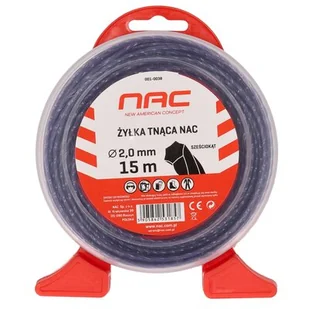 Żyłka tnąca marki NAC o przekroju sześciokątnym o średnicy 2 mm, wykonana z trwałego i elastycznego tworzywa sztucznego. Kompatybilna z większością standardowych głowic tnących w podkaszarkach i kosach spalinowych.
