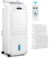 Profesjonalne urządzenia do chłodzenia mieszkania to zazwyczaj ogromna inwestycja. Wtedy warto zainteresować się przenośnymi urządzeniami, które mogą nas naprawdę zaskoczyć swoją funkcjonalnością. Ogromną zaletą naszego produktu jest to, że łączy w sobie trzy funkcje: chłodzenie, oczyszczanie oraz nawilżanie powietrza. Docenią to osoby cierpiące na choroby układu oddechowego i alergicy. Decydując się na klimator 3 w 1, nie musimy inwestować w trzy różne maszyny i dzięki temu oszczędzimy też dużo miejsca w mieszkaniu. Funkcja COOL obniża temperaturę uruchamiając pompę, ponieważ urządzenie wyposażone jest w zbiornik na wodę z korkiem spustowym i ze wskaźnikiem poziomu (12 litrów) oraz dwa specjalne wkłady chłodzące, które po uprzednim schłodzeniu w zamrażalniku i umieszczeniu w zbiorniku zapewniają nawiew chłodnego powietrza. Możemy ustawić jedną z trzech prędkości wentylatora, dzięki czemu można łatwo kontrolować temperaturę w pokoju czy biurze.
