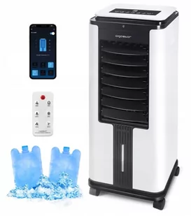 Im gorącej na dworze, tym bardziej wzrasta moc chłodzenia klimatora. Podczas parowania wody ciepło utrzymujące się w powietrzu jest pochłaniane i tym samym odczuwalna temperatura znacznie spada. Funkcja suszenia zapobiega powstawaniu pleśni Aby klimator Frosty działał bez zarzutu, do jego ustawień została dodana funkcja automatycznego suszenia, dzięki której na wilgotnej zasłonie nie pojawi się pleśń i nie będzie wydobywał się nieprzyjemny zapach. Urządzenie wyposażone jest w wiele innych funkcji, takich jak timer czy wyświetlacz LCD, funkcja wifi. Inteligentne otwarcie nowego życia domowego Sterowanie za pomocą aplikacji WiFi Zmień tryb pracy Zmień prędkość wentylatora Zmiana funkcji - tryb uśpienia, zmiana jednostki Godziny pracy urządzenia Wyjmowany duży zbiornik 7l Klimator został wyposażony w duży zbiornik który umożliwia wielogodzinne chłodzenie bez konieczności ciągłego uzupełniania.