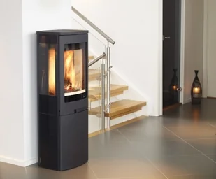 Piec wolno stojący stalowy-żeliwny ze schowkiem na drewno wyposażony jest w innowatorski system wtórnego spalania ograniczający zużycie drewna oraz wydzielanie zanieczyszczeń do atmosfery. Nie posiada rusztu i popielnika.