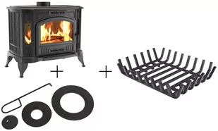 Szuflada/pojemnik na popiół, w których gromadzą się pozostałości po spalonym drewnie oraz ruchomy ruszt, ułatwiający usunięcie popiołu.