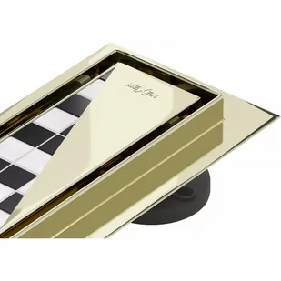 Materiał: Stal nierdzewna AISI 304 Wykończenie: Złoty Szerokość: 90 cm Głębokość montażu: 52 mm Przepustowość: 50 l/min Ruszt do wklejania płytek szerokości 50 mm Rynna i ruszt grubości 1,2 mm Kołnierz okalający - 2 cm Głębokość rusztu - 12 mm W zestawie: