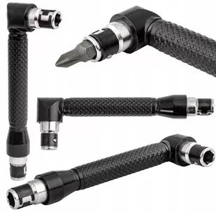 Wkrętak kątowy do bitów uchwyt do końcówek bity 1/4″ Wkrętak kątowy to niezbędne wyposażenie każdej skrzynki z narzędziami i każdego majsterkowicza. Końcówki wewnątrz wkrętaka są magnetyczne oraz posiadają zatrzaski, więc nie ma obawy, że bit znajdujący się wewnątrz wypadnie bądź będzie się obracał razem ze śrubką. 6-kątny uchwyt do bitów pozwala na wkręcanie czy też odkręcanie śrub pod kątem 90°. Dzięki jego antypoślizgowej strukturze pozwala na bezpieczny chwyt nawet przy pracy nad głową w niedostępnych miejscach, tam gdzie inne narzędzia mają problem z dotarciem. Dwustronne gniazdo do końcówek 1/4” daje możliwość stosowania wkrętaka w dwóch konfiguracjach, z krótszą lub dłuższą końcówką – w zależności od potrzeb.