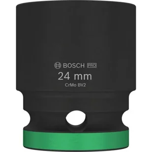 Nasadka udarowa marki Bosch o długości 40 mm i średnicy 24 mm przeznaczona jest do pracy z kluczami wyposażonymi w czworokątny uchwyt 1/2". Wykonana ze stali chromowo-molibdenowej, zapewnia wysoką odporność na duże obciążenia i momenty obrotowe. Dodatkowa powłoka fosforanowa chroni nasadkę przed korozją, zwiększając jej trwałość i niezawodność.