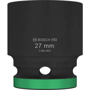 Nasadka udarowa marki Bosch o długości 42 mm i średnicy 27 mm przeznaczona jest do pracy z kluczami wyposażonymi w czworokątny uchwyt 1/2". Wykonana ze stali chromowo-molibdenowej, zapewnia wysoką odporność na duże obciążenia i momenty obrotowe. Dodatkowa powłoka fosforanowa chroni nasadkę przed korozją, zwiększając jej trwałość i niezawodność.