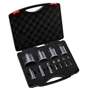 STALCO PERFECT S-71038 – zestaw 11 otwornic diamentowych (fi 6-75 mm) do precyzyjnego wiercenia w ceramice, gresie i szkle. Wytrzymałe, bezudarowe narzędzia w praktycznej walizce.