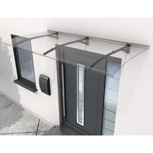 Zadaszenie drzwi wejściowych Swing Secco firmy Gutta. Lekka i trwała, konstrukcja aluminiowa malowana proszkowo wypełniona płytą poliwęglanową o grubości 3 mm. Zadaszenie wyposażone jest w zintegrowane rynienki odpływowe.