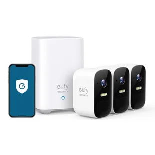 rozdzielczość 1080p zapewnia, że każde nagranie jest krystalicznie czyste. Szerokokątny obiektyw 135° gwarantuje krystalicznie czysty widok panoramiczny - od garażu po drzwi wejściowe, wszystko jest w zasięgu. Anker Innovations eufyCam 2C 3-Cam Kit - serwer wideo + kamera s - bezprzewodowa - Wi-Fi - 3 - kamera sieciowa Bezprzewodowy zestaw kamer Eufy eufyCam2 C3 z Homebase
