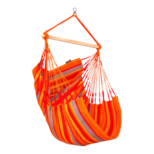 Dzięki produkcji w technologii wysokiej jakości płyt, jest ona wyjątkowo odporna na warunki atmosferyczne i ma przyjemnie gładką powierzchnię. Hamak jest wytwarzany ręcznie w Kolumbii przez rzemieślników przy użyciu tradycyjnych metod. Najwyższa jakość, wygoda i piękno. Podwojenie nici wątku wzmacnia obszycie, które jest wyjątkowo odporne na rozdarcia. Dzięki specjalnemu zintegrowanemu obrotowi bezpieczeństwa można obracać krzesło we wszystkich kierunkach i we wszystkich stopniach bez skręcania linek zawieszenia.