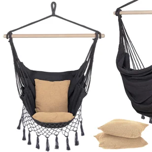 W ciągu dnia pozwala na relaks z książką a wieczorem na przyjemnie spędzany czas w gronie najbliższych. Dopuszczalna waga użytkowania wynosi 150 kg. Gratis dwie poduszki w beżowym kolorze. ŁATWY MONTAŻ Sufitowy zestaw montażowy jest podstawowym akcesorium jeżeli w najbliższym czasie planowany jest zakup fotela wiszącego, hamaka brazylijskiego, czy huśtawek. Mocne i trwałe elementy pozwalają na montaż wewnątrz domu bądź poza nim.