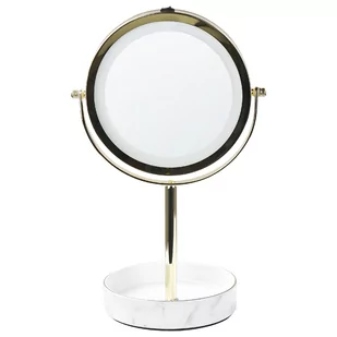 Cechy produktu: Obraca się o 360°, Strona powiększająca, Przyciągający uwagę element wystroju, Połączenie piękna z funkcjonalnością, Wbudowane oświetlenie LED, Zasilany 4 bateriami AAA, Dodatkowa przestrzeń do przechowywania. Montaż: Częściowo zmontowany. 5-15 min. . Wskazówki dotyczące pielęgnacji: Metal: 1. Elementy miedziane lub chromowane należy polerować przeznaczonymi do tego środkami.