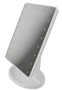 - 22 DIODY LED ORAZ 2 MOŻLIWOŚCI ZASILANIA ? lusterko posiada aż 22 diody LED, które ustawione są na jego obrzeżach. Takie ustawienie diod pozwala na pełną widoczność każdej części twarzy, dekoltu czy szyi. Intensywność oświetlenia diod można regulować za pomocą dotykowego przycisku, który znajduje się na dole lusterka. Lusterko posiada zasilanie bateryjne oraz zasilanie sieciowe.
