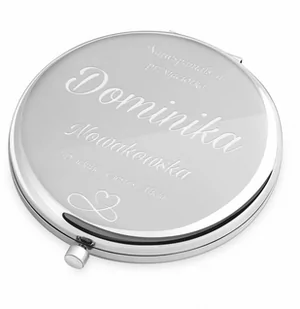 Spersonalizowane okrągłe lusterko srebrne z grawerowaną dedykacja dla kobiety na wyjątkową okazję.