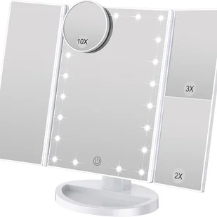 Lustro do makijażu, regulowana jasność, 22 diody LED, powiększenie 1X/2X/3X, podwójne zasilanie (białe)