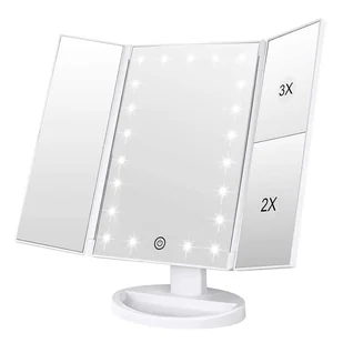 Trzypanelowa konstrukcja: Wygodne do przenoszenia i codziennej konserwacji, można je otworzyć lub złożyć jak książkę, gdy nie jest używane, aby zapobiec gromadzeniu się kurzu lub zarysowań. Trzyczęściowa, zdejmowana konstrukcja pozwala zabrać je ze sobą i cieszyć się udoskonaleniem makijażu w dowolnym czasie i miejscu. Praktyczny design: Powłoka UV sprawia, że powierzchnia lustra jest bardziej polerowana i gładka, zapobiegając zarysowaniom powierzchni, odciskom palców i plamom oleju. Obudowa z tworzywa ABS jest trwalsza niż zwykły plastik, dzięki czemu lustro służy dłużej. Zasilanie: To lustro LED może być zasilane 4 bateriami AAA (brak w zestawie) lub kablem USB (kabel USB w zestawie). Samo lustro nie może magazynować energii elektrycznej.