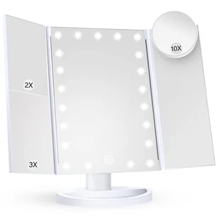 21 wbudowanych żarówek LED; lusterko do makijażu zapewnia dobrą jasność podczas nakładania makijażu; długie naciśnięcie przełącznika na ekranie dotykowym umożliwia ściemnienie lub rozjaśnienie światła.
