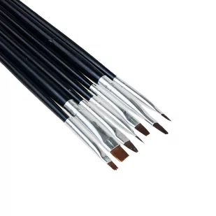 - Zestaw 7 pędzli wykonanych z trwałego tworzywa sztucznego, z aluminiową skuwką, wykończone syntetycznym włosiem.