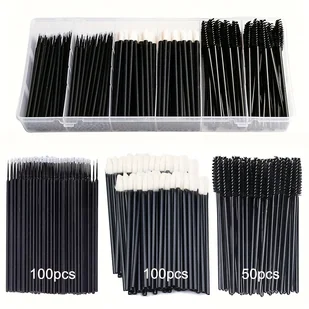 TEMU 250 szt. Zestaw Narzędzi do Makijażu: Pędzelki do Brwi, Szczeciny do , Pędzelek do Szminki, Jednorazowe Aplikatory do Eyelinerów i Cieni,