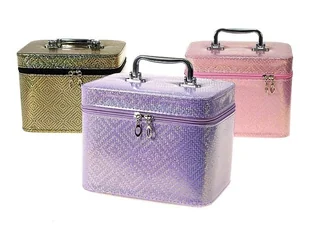 Adar Kuferek L z lusterkiem na zamek 23x17x15cm MIX. Mix wzorów, produkt wysyłany losowo, cena za 1 sztukęKuferek L, walizka z lusterkiem, zapinany na zamek, 23x17x15cm