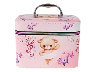 Kuferek szkatułka M, walizka z lusterkiem na zamek RÓŻOWY W Misie i motylki