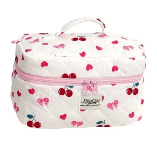 eCarla pikowana kosmetyczka kuferek w serca i wiśnie KS150