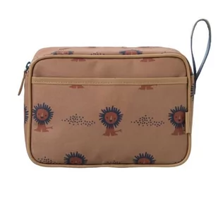 Fresk Kosmetyczka duża Lew Praktyczna i pojemna kosmetyczka sprawdzi się idealnie podczas wyjazdu. Pomieści wszystkie niezbędne kosmetyki i dziecięce akcesoria toaletowe. Kosmetyczka w środku posiada 3 kieszenie oraz jedną zewnętrzną zapinaną na magnes. Specyfikacja: Skład: 100% poliesterWymiary: