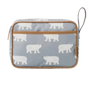 Fresk Kosmetyczka duża Miś polarny Praktyczna i pojemna kosmetyczka sprawdzi się idealnie podczas wyjazdu. Pomieści wszystkie niezbędne kosmetyki i dziecięce akcesoria toaletowe. Kosmetyczka w środku posiada 3 kieszenie oraz jedną zewnętrzną zapinaną na magnes. Specyfikacja: Skład: 100% poliesterWymiary: