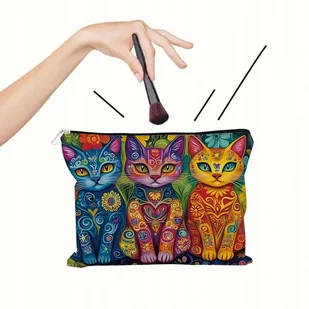 Kosmetyczka / portmonetka z nadrukiem w koty – styl i funkcjonalność w jednym! Praktyczna i urocza kosmetyczka z motywem kociego kolażu, wykonana z wytrzymał...