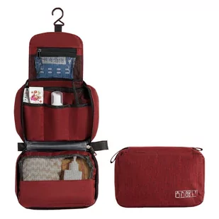 Jej zawartość również zobaczysz dzięki siateczce. Kosmetyczkę na kosmetyki możesz złożyć na czas podróży i zapiąć całość na zamek. W domowej lub hotelowej łazience mażesz zawiesić ją na haczyku na kabinie prysznicowej, uchwycie na ręcznik i korzystać z niej jak z małej szafki na kosmetyki : )