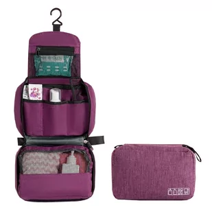 Jej zawartość również zobaczysz dzięki siateczce. Kosmetyczkę na kosmetyki możesz złożyć na czas podróży i zapiąć całość na zamek. W domowej lub hotelowej łazience mażesz zawiesić ją na haczyku na kabinie prysznicowej, uchwycie na ręcznik i korzystać z niej jak z małej szafki na kosmetyki : )