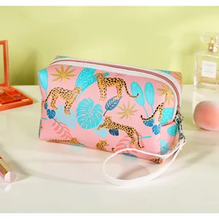 Organizer na kosmetyki / kosmetyczka podróżna Modny dodatek na podróż - rozkładana kosmetyczka z pięknym wzorem! Wykonana z miękkiego, śliskiego materiału. Bardzo praktyczna i uniwersalna.Kosmetyczka w sam raz na dłuższe podróże czy wyjazdy - jest bardzo poręczna i pojemna, pomieści wszystkie niezbędne rzeczy.Posiada jedną komorę zasuwaną na zamek.Kosmetyczka jest bardzo pojemna. Wymiary: 22 x 8 x 10 cm Waga:80g
