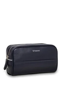 Granatowa ponadczasowa kosmetyczka z kolekcji Piemonte od Valentini wykonana ze skóry naturalnej. Wymiary zewnętrzne produktu to: 24,5 x 21 x 12 cm. Dużym at...